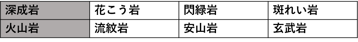 この表に出てくる火成岩は有名なので覚えておきましょう!